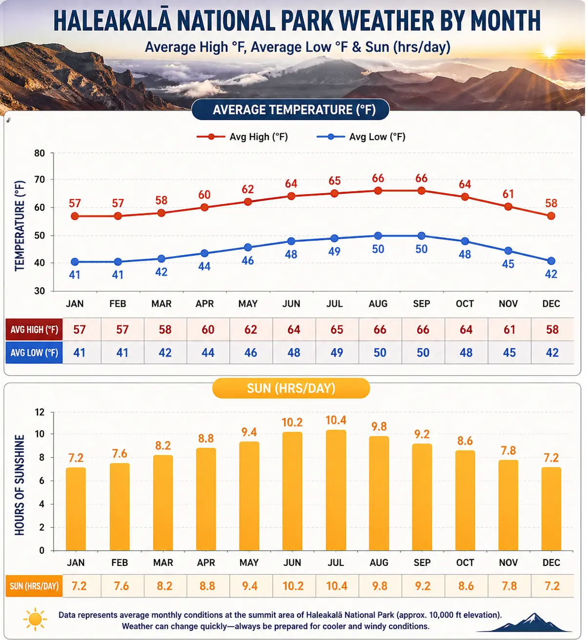 Weather at Haleakalā National Park is as dynamic as its landscape. Whether you’re chasing a sunrise above the clouds or hiking through volcanic terrain, understanding seasonal patterns will help you get the most out of your visit.
