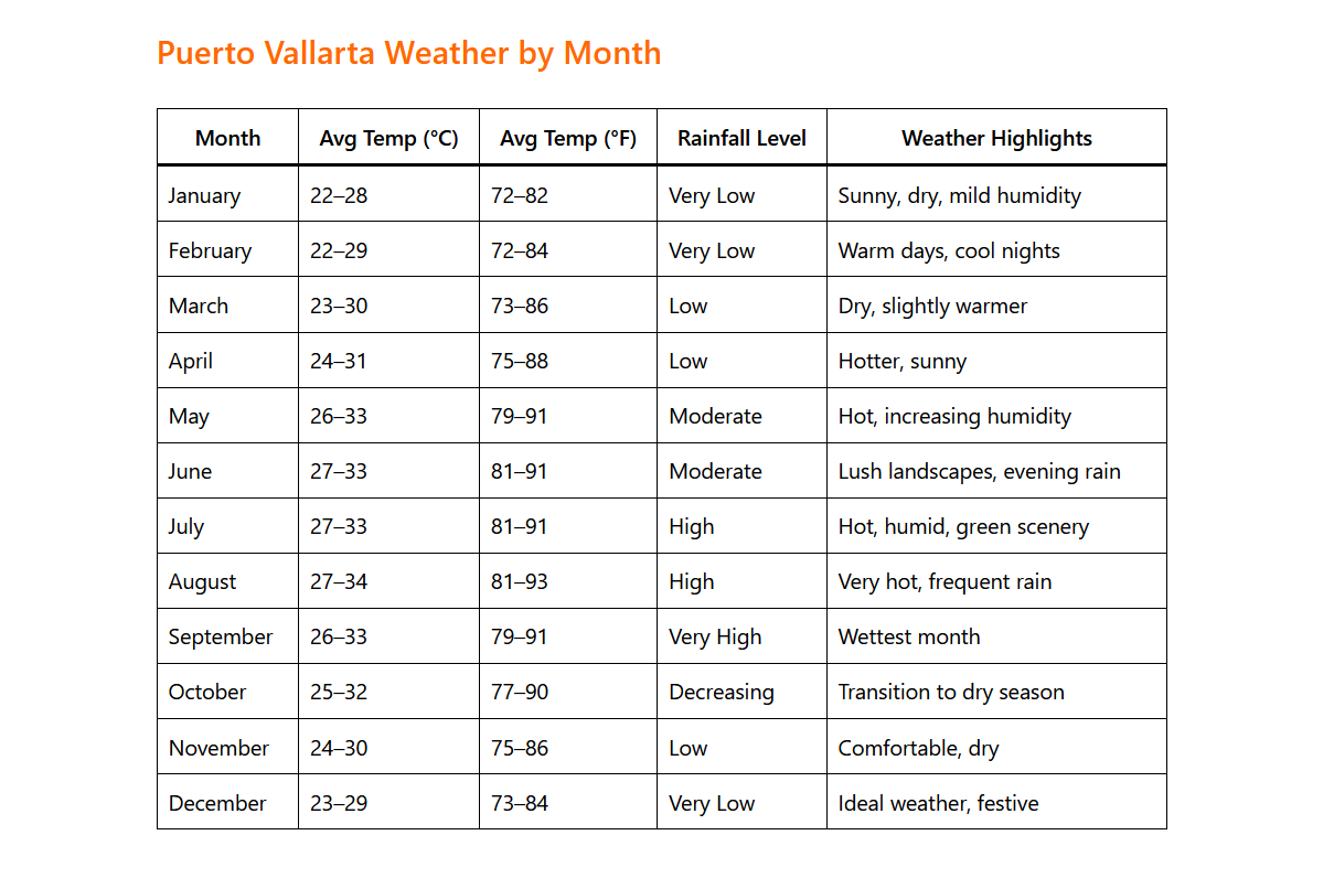 Puerto Vallarta’s weather offers something for every type of traveler. Whether you prefer sunny beach days, lush green landscapes, or budget-friendly travel, understanding Puerto Vallarta weather by month will help you plan the perfect trip. With the right timing, you can enjoy everything from whale watching and water sports to cultural festivals and peaceful beach escapes.