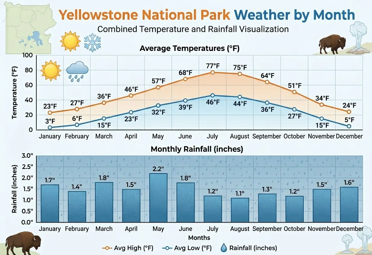 Weather in Yellowstone National Park can change rapidly at any time of year. Even in summer, nights can be chilly, and sudden storms are common. The key to enjoying Yellowstone is preparation—pack layers, check forecasts, and stay flexible with your plans.